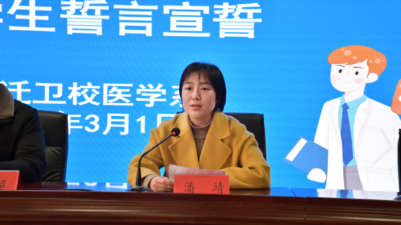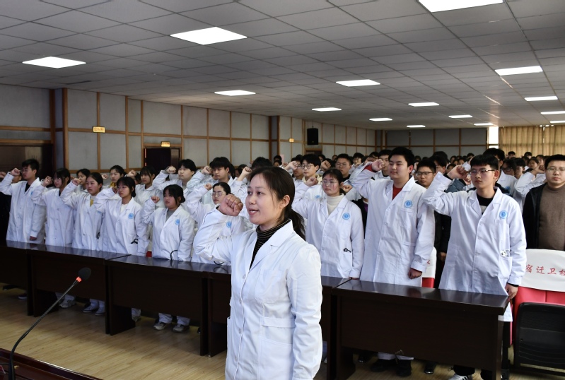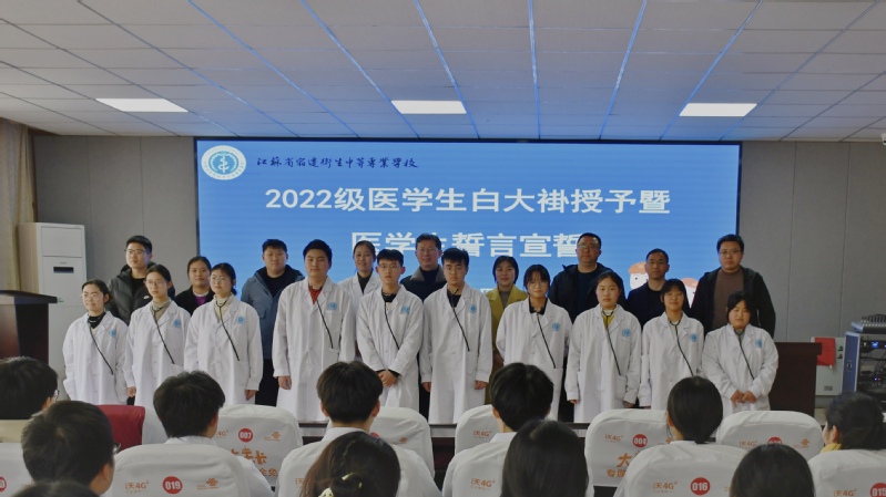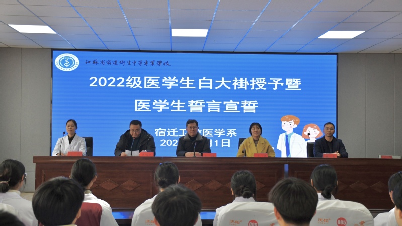 3月1日下午,医学系在四楼大会议室,隆重举行了2022级医学生白大衣授予及宣誓仪式,仪式气氛庄重而神圣。宿迁卫校党委书记、校长张超、副校长潘靖和医学系各负责同志及班主任出席活动,活动由医学系周明臣主任主持。与会领导和老师为医学生授予白大褂和听诊器,并见证医学生庄严宣誓。