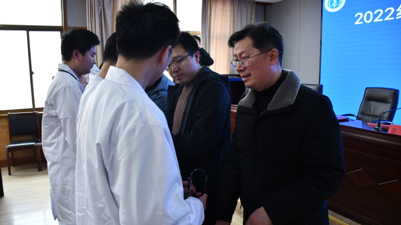 最后,张超校长作了讲话。他指出,授衣和宣誓仪式,是医学生真正踏上医学道路的第一课,目的是增强学生的医学人文精神,引导学生将高尚医德与精湛医术作为终身职业追求。他强调,学医之路道阻且长,行稳才能致远,扎实苦干才能结出胜利之果。他要求同学们,一是要树立正确的价值观,做高尚从医人。要在道德上顶得起、立得住、过得硬,明确医生行为规范,坚守行为底线,加强自我修养,做一个有能力,有温度,有品德的从医者。二是要掌握过硬的本领,做优秀医学生。要树立终生学习的态度,努力练就“上得了课堂,下得了病房”的功底,扎实质朴,行在脚下,带着热忱与执着,早日成为一名优秀的医学人才。三是要胸怀远大的理想,做健康守护者。要牢记医学生誓言,弘扬前辈们在抗疫斗争中表现出来的伟大精神,把握历史和时代的发展方向,把青春理想和人类健康、国家发展、社会进步紧密联系起来,在服务社会,造福人类中成就伟大梦想。