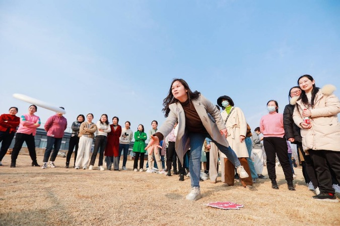 活动设置了手绘飞盘、一圈到底、才艺展示等集趣味性、技巧性、娱乐性于一体的户外拓展环节。活动现场气氛热烈,欢声笑语不断,每个人的脸上都洋溢着开心的笑容。大家全情投入,团结友爱,既发挥了团队精神,又展现出女职工美丽自信、快乐健康的风采。团建结束后,教职工们到三台山踏青,尽情享受初春时节的秀丽景色。