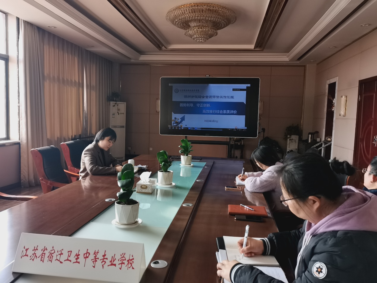 为更好地推进2022级学生综合素质评价工作,根据联院要求,3月2日下午,淮宿扬协作组线上召开了五年制高职学生综合素质评价工作研讨会,宿迁卫校潘靖副校长,教务处丁炳干处长,学工处荣峰处长、李洁副处长,学工处及团委相关老师参加了会议。