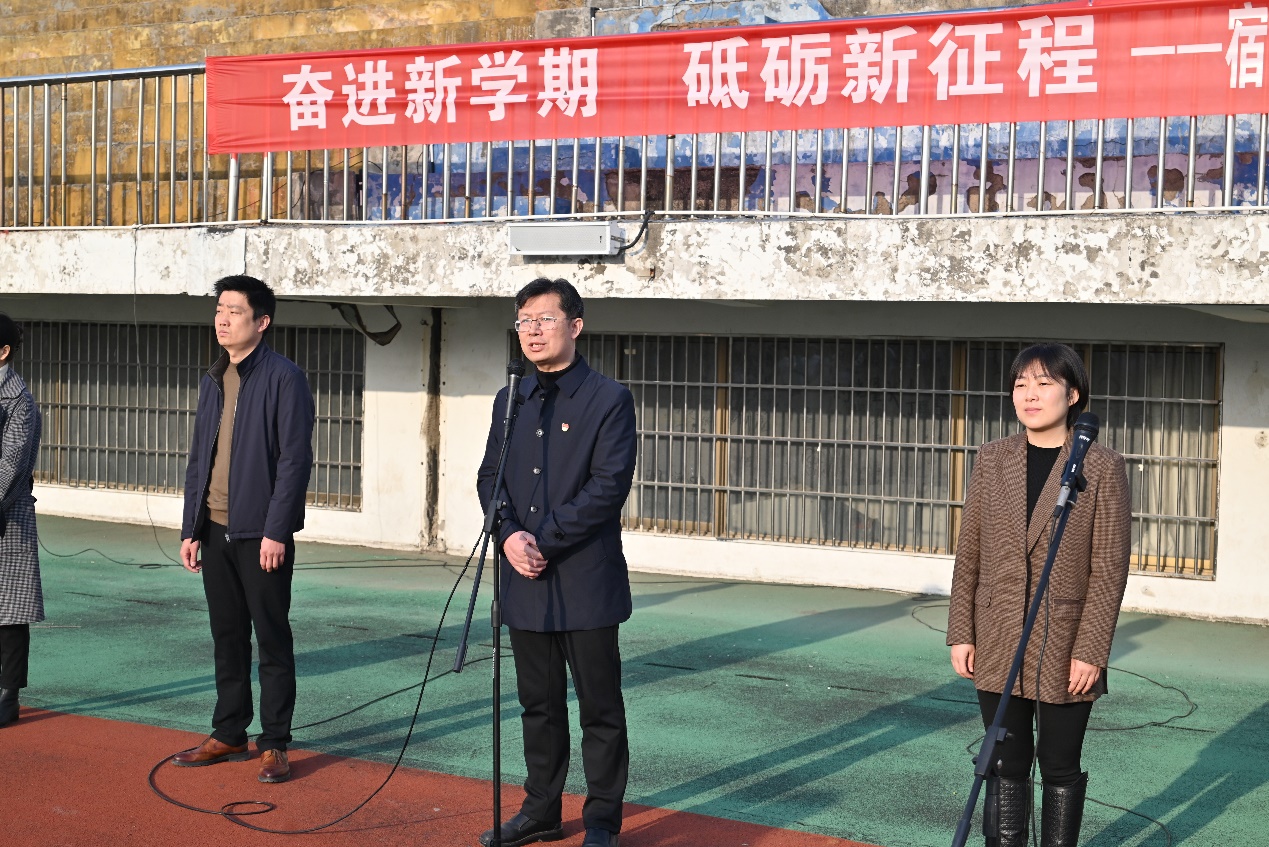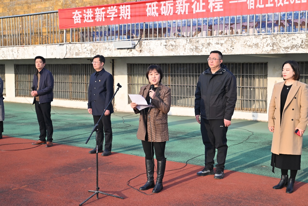 张超向全体师生致以新学期诚挚的祝福,并回顾了2022年是不平凡的一年,在全体师生的共同努力下,打赢了校园疫情防控阻击战,肯定了师生们在过去一年的奉献和付出。对于新的一年,张超指出,2023年是全面贯彻落实党的二十大精神的开局之年,也是学校高质量发展实施的关键一年。他勉励并希望同学们,一是在精神生活方面,做一个遵纪守法的好公民。学习雷锋无私奉献的精神,勇于担当,常怀仁爱之心,在一言一行、一举一动中传递正能量,要成为党的二十大的宣传标兵,要成为中国传统文化的学习标兵,要成为青年志愿服务的行动标兵。二是在学习生活方面,做一名勤奋刻苦的好学生。保持求知的热情,博学审问、慎思明辨,要成为勤奋好学的倡导者,要成为勤奋好学的践行者,要成为勤奋好学的创新者。三是在健康生活方面,做一名体魄康健的好青年。保持平和的心态,规律作息、适度锻炼,要成为健康生活的咨询员,要成为健康生活的运动员,要成为健康生活的宣传员。