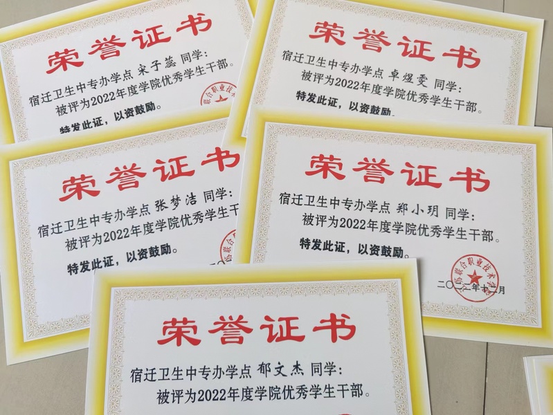 近日,江苏联合职业技术学院2022年度三好学生、优秀学生干部和先进班集体评选结果公开发布,宿迁卫校李晗等26人获得联院“三好学生”荣誉称号、郑小玥等5人获得联院“优秀学生干部”荣誉称号、2020级高护1班和2020级高护2班获得联院“先进班集体”荣誉称号。