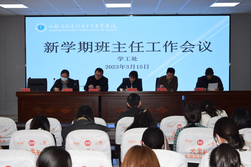 春回大地万象新,扬帆奋进新学期。为明确新学期德育工作要求,提高班级管理效率,助力班主任队伍的成长,切实提高班主任管理工作的实效,促进学校德育工作的发展,3月15日,宿迁卫校召开了新学期班主任工作会议。校党委委员、副校长潘靖出席会议并讲话,学工处处长荣峰,副处长李洁、杨振宇、包成银,各系部学生工作负责人和全体班主任参加了会议。会议由荣峰主持。