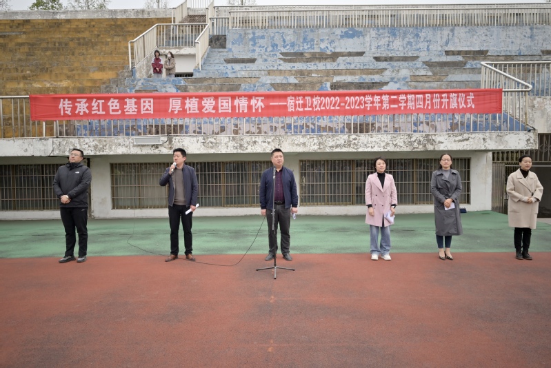 为弘扬中华民族优良传统,缅怀革命先烈,以实际行动表达对革命英烈和先辈的感恩怀念,激发学生的爱国之情和报国之志,4月3日,宿迁卫校举行了“传承红色基因 厚植爱国情怀”主题升旗仪式。宿迁卫校副校长王立、潘靖出席仪式,各处室及系部负责同志,全体班主任及学生参加了升旗仪式。