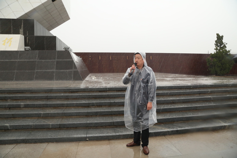 在革命烈士纪念碑前,全体师生代表齐唱国歌,向革命烈士默哀致敬并敬献花圈,深情缅怀革命先烈的丰功伟绩。荣峰给大家讲授了宿北大战微党课,讲述“人民解放战争第一役”宿北大战的战役经过,广大革命将士为了理想不惜抛头颅洒热血的爱国情怀以及宿迁人民踊跃支前、无私奉献的伟大精神。