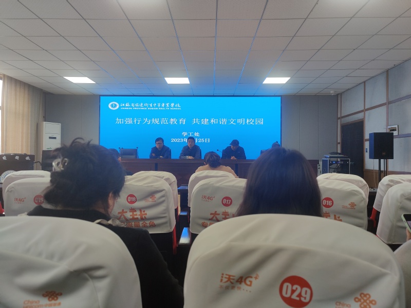 为进一步加强学生的常规教育,规范学生行为习惯,加强班级管理力度,提升学生文明素养,构建和谐文明校园。4月25日下午,宿迁卫校学工处召开“加强行为规范教育 共建和谐文明校园”主题工作会议,学工处及各系部相关负责人和全体班主任参加了本次会议。会议由学工处副处长杨振宇主持。