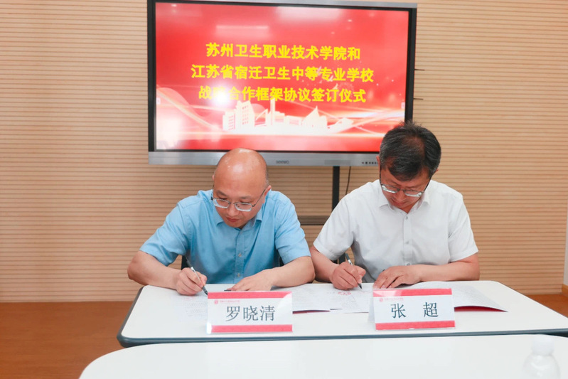 苏州卫院党委副书记、院长罗晓清,宿迁卫校党委书记、校长张超代表两校签订了合作协议。