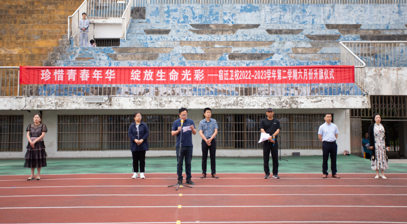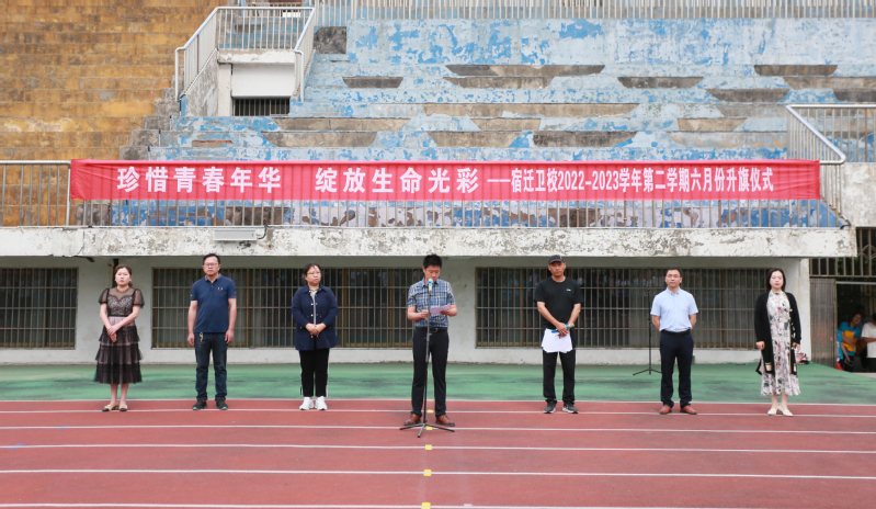 为更好地促进学生健康成长,帮助学生建立生命与自我的和谐关系,勇于正视和面对生命中的困难、挫折与挑战,培养积极向上、奋发有为的人生态度,6月12日宿迁卫校举行了“珍惜青春年华 绽放生命光彩”主题升旗仪式。学工处及系部负责同志,全体班主任和学生参加了升旗仪式。仪式由学工处副处长杨振宇主持。