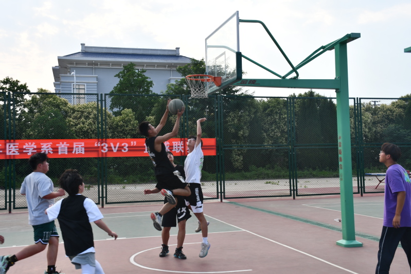 为促进学生健康体育运动,丰富校园文化生活,6月13日下午,宿迁卫校篮球场上人声鼎沸,随着宿迁卫校党委委员、副校长潘靖将篮球抛入空中,医学系首届“3V3”篮球赛正式开始。