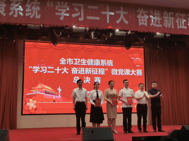 王星同志在前两轮微党课大赛选拔赛中表现优异,进入总决赛,与来自全市卫健系统的选手激烈角逐。比赛现场,座无虚席,王星以《薪火赓续百余载 红色信仰耀青春》为题,用饱满的情绪、生动的语言,聚焦“青春的底色”,讲述了一代代仁人志士将小我融入大我,用奋斗谱写青春的华美篇章。结合岗位职责与工作经历,讲到身边的一群积极进取、无私奉献,传承红色信仰精神的优秀教师、毕业生、在校生等青年群体。在几分钟的时间内,她用丰富的内容为在场的观众呈现了一堂精彩的微型党课,也让大家在现场挥舞的党旗中产生强烈的思想和情感共鸣。