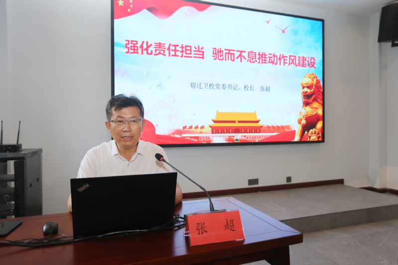 随后,在第八教室宿迁卫校党委书记、校长张超以《强化责任担当 驰而不息推动作风建设》为题从坚定理想信念,补足精神之钙;锻造忠诚担当,培养有为干部;破除形式官僚,打造过硬作风;拧紧纪律螺丝,树立规矩意识;扎紧制度牢笼,严把权力关口;涵养廉洁文化,全面从严治党等六个方面给全体党员上了一堂生动形象的党课。