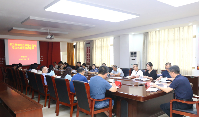 7月12日,宿迁卫校召开党委理论学习中心组学习会,传达学习习近平总书记考察江苏重要讲话精神,学习贯彻省委、市委常委会扩大会议和市卫健委会议精神。党委书记、校长张超,党委委员、副校长王立及中层干部参加会议。