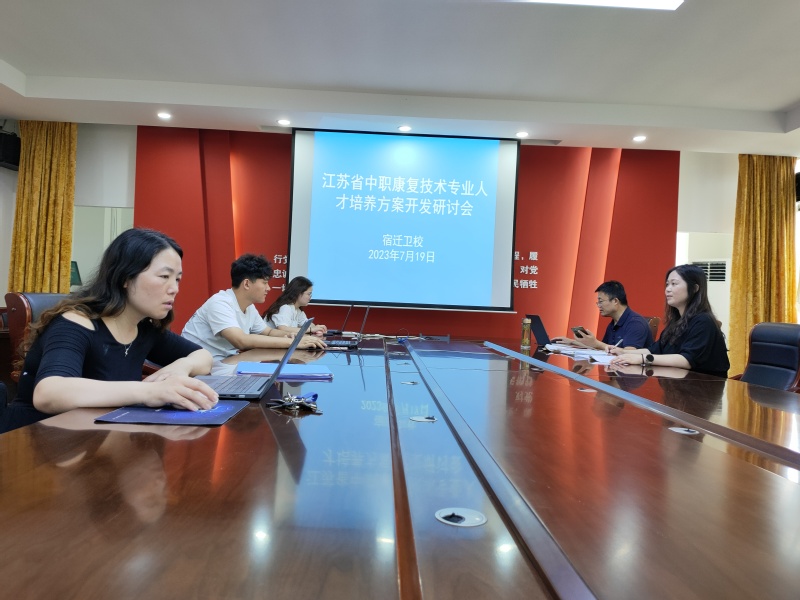 7月19日,宿迁卫校开展了江苏省中职医护康复专业类康复技术专业指导性人才培养方案研讨会。本次中职康复技术指导性人才培养方案开发由宿迁卫校牵头负责,开发研制组成员有南京卫生高等职业技术学校张华丽主任、江苏医药职业学院陈进主任、江苏省徐州医药高等职业学校程涛主任、宿迁市第一人民医院苏宁主任、宿迁市康复医院张超主任和我校教务处丁炳干处长、医学系王莉副主任和康复教研室孙爱萍主任及所有成员。