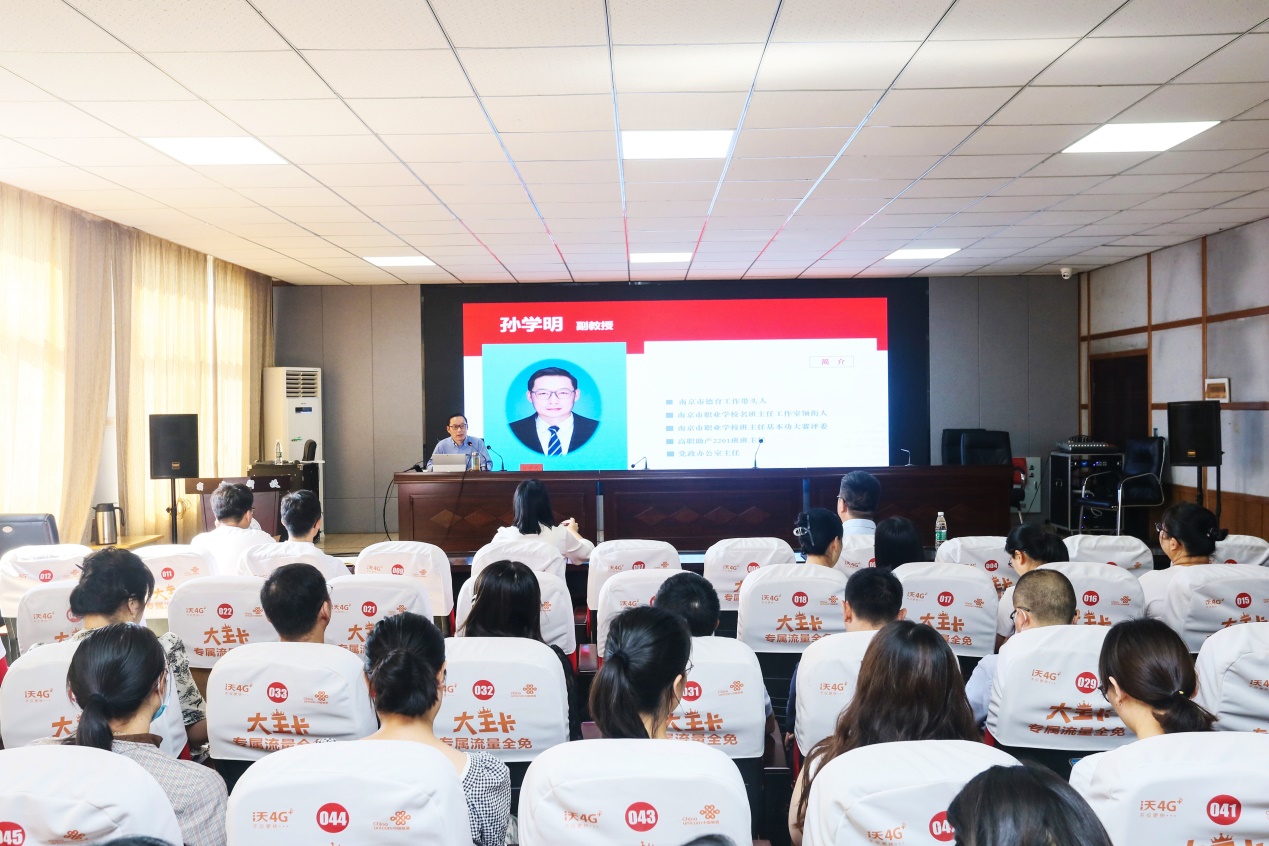为进一步落实立德树人根本任务,全面提高学校德育队伍的工作水平,不断增强学校德育工作的科学性和有效性,8月31日,宿迁卫校特邀南京卫生高等职业技术学校党政办公室主任孙学明作德育专项培训讲座。宿迁卫校党委书记、校长张超,副校长王立及全体教职工参加培训,培训由副校长潘靖主持。
