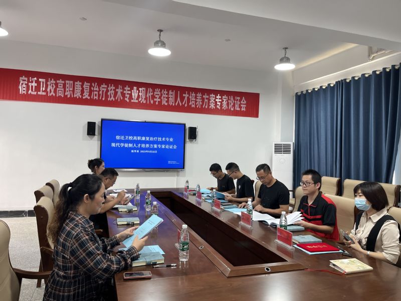 9月22日下午,宿迁卫校举行了高职康复治疗技术专业现代学徒制人才培养方案专家论证会。康复医院院长黄之同,成人康复治疗中心主任张超,宿迁医院康复治疗中心主任许保闪,宿迁市第一人民医院康复治疗中心主任苏宁,宿迁市中西医结合医院康复治疗中心主任沈慧,教务处处长丁炳干、医学系主任周明臣,医学系副主任杨雷,医学系康复教研组组长孙爱萍以及全体康复教师共同参加会议,会议由医学系副主任王莉主持。