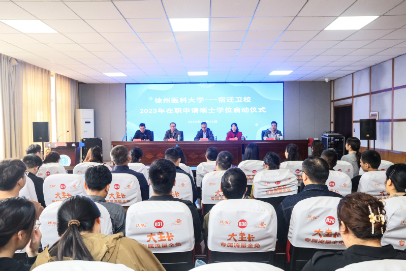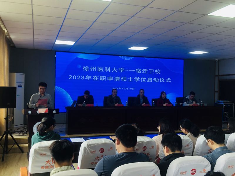 为更好的落实《宿迁市人民政府 徐州医科大学战略合作框架协议》,为宿迁医药卫生人才打通学力层次提升路径、提高学力水平,10月10日,宿迁卫校举行徐州医科大学---宿迁卫校2023年在职申请硕士学位启动仪式。徐州医科大学研究生院副院长缪顾根、宿迁卫校党委委员、副校长潘靖、徐州医科大学研究生院招办主任杜举、副主任朱源、宿迁卫校继续教育处全体人员及40余位同等学力申硕学员参加活动。启动仪式由宿迁卫校继续教育处处长张士新主持。