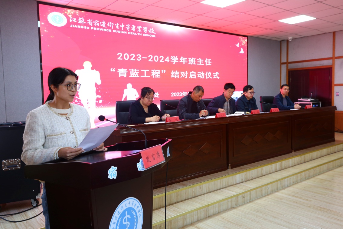 为进一步促进加快青年班主任专业成长,发挥骨干班主任的“传”、“帮”、“带”作用,加强学校高素质班主任队伍建设,11月8日下午,宿迁卫校举行班主任结对仪式暨班主任培训开班仪式。学工处处长荣峰及副处长包成银、杨振宇、系部分管主任、近两年新任班主任及2023-2024学年度班主任“青蓝结对”指导老师参加仪式。仪式由学工处副处长李洁主持。