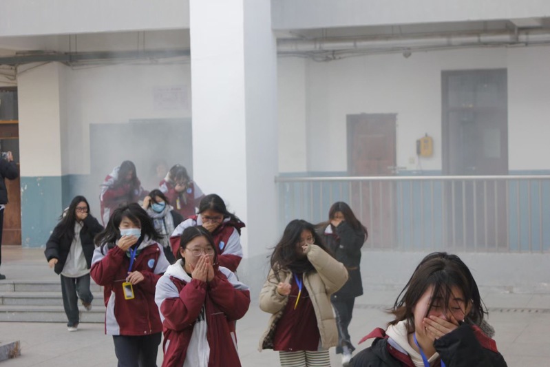 下午三时许,宿迁卫校党委书记、校长张超通过对讲机宣布本次应急疏散演练正式开始。校园里顿时警报声大作,陷入一片紧张的气氛。工作人员按照预定计划点燃了发烟装置,在教学楼生成了大量烟雾,模拟真实的火灾场景。