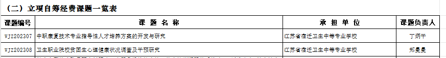 我校高度重视此次申报工作,积极宣传发动教师申报,组织专家进行初评,严格把好申报第一道关卡,择优选送省卫生健康行指委评审,切实提高申报课题质量。据悉,全省卫生健康职业技术教育研究立项课题共申报64项,宿迁卫校申报4项课题,3项课题成功立项,其中1项课题荣获江苏省卫生健康职业教育行业指导委员会一万元课题资助经费。