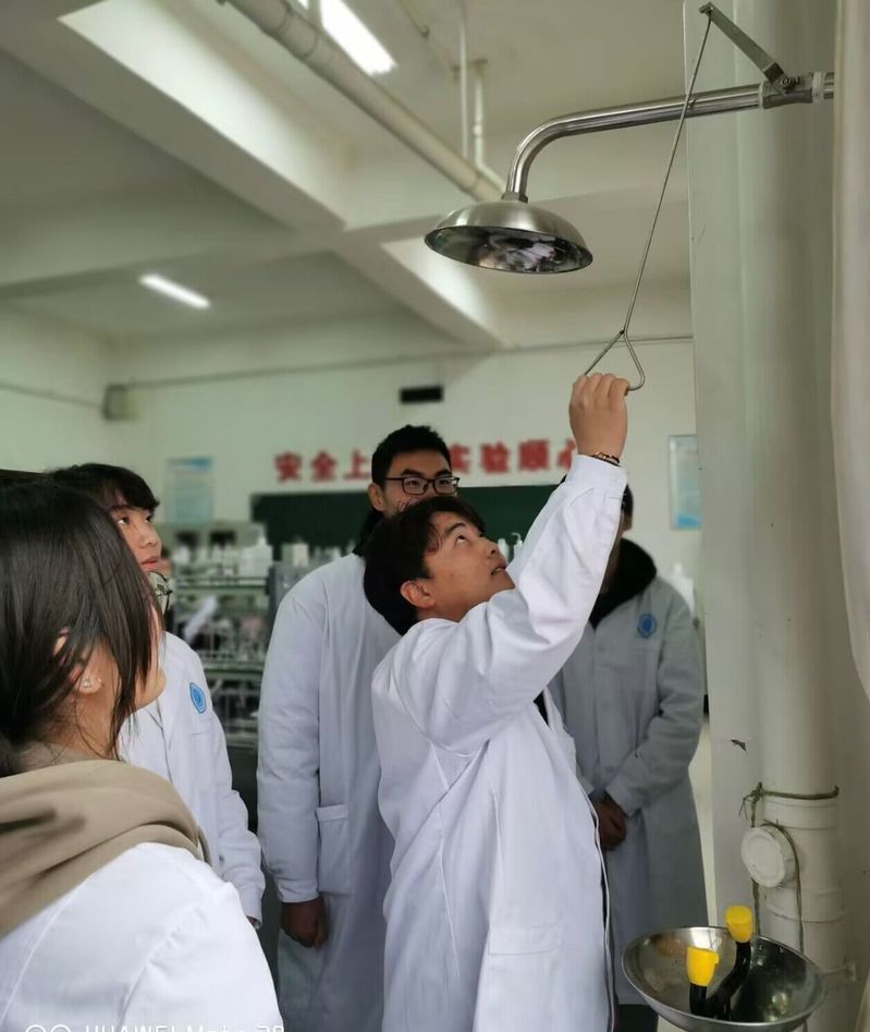 实验员蔡兴兴老师对学生进行了紧急喷淋-洗眼装置的使用培训,她从紧急喷淋-洗眼装置的用途、位置、使用方法等方面开展培训并进行现场演示,确保每一位学生都学会使用。培训后通过模拟酸、碱灼伤皮肤后进行应急演练,进一步提升了学生们安全意识和应急能力。