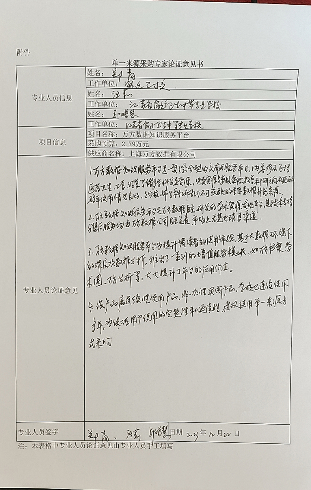 专业人员论证意见(见附件)