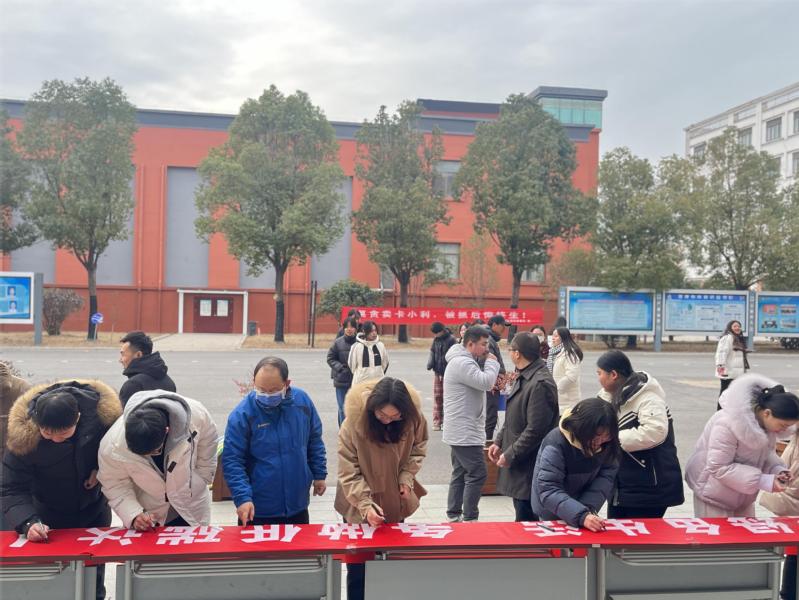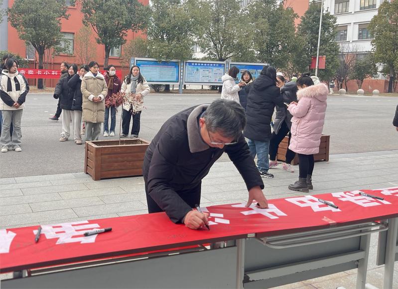 为建设资源节约型校园,树立绿色发展理念,按照宿迁市机关事务管理局《关于在全市公共机构开展争做“低碳达人”活动的通知》要求,12月26日下午,宿迁卫校组织教职工开展低碳行动签名承诺活动,全体教师在“倡导绿色生活 争做低碳达人”横幅上庄严地写下了自己的名字。党委书记、校长张超,部分在校领导班子、职工代表100余人参加签名活动。