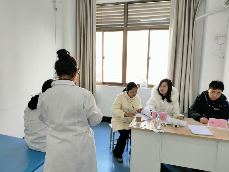 此次考核的评委由来自江苏医药职业学院、盐城特殊教育中等专业学校和宿迁卫校高梦如,董苏等6位老师组成。考核内容主要包括康复评定技术以及运动治疗技术,成绩依据考核记录和评分标准,由考官现场评判。整个考核工作程序规范,组织周密,现场纪律严明,秩序井然,考生沉着冷静,操作熟练,展现了良好的综合素养和专业实践能力。