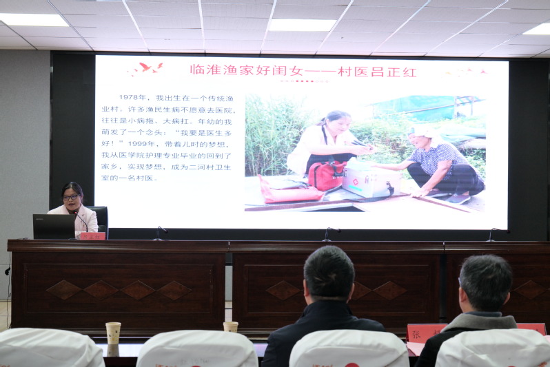 全体师生共同观看乡村医生吕正红先进事迹专题片。吕正红是宿迁市泗洪县临淮镇胜利社区卫生室的一名医生,曾入选“中国好医生好护士”月度人物,江苏“最美基层共产党员”,“百名医德之星”等。寒来暑往24年,吕正红累计接诊35.2万人次,出诊1.45万人次,划船行程4.64万公里。该片深入展现了吕正红医生无私奉献、为民服务的崇高精神。