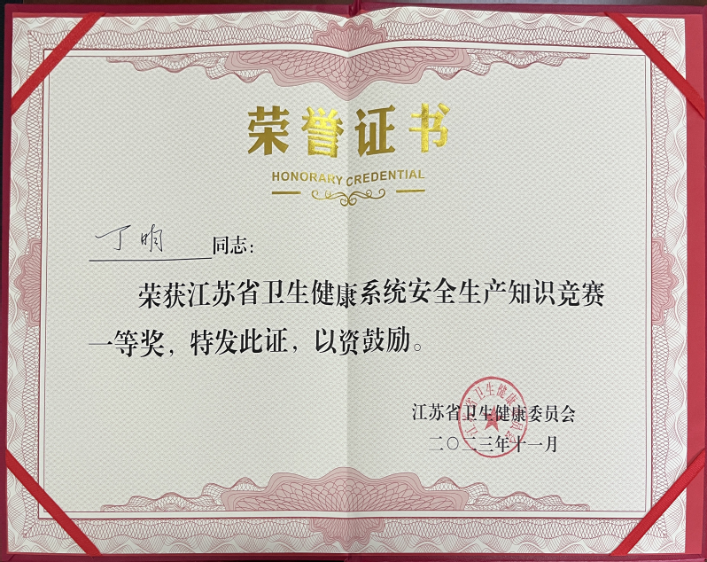 12月28日,省卫生健康委举行的第三届全省卫生健康系统安全生产知识竞赛活动决赛在南京市举行,我校丁明老师荣获个人一等奖,为我校赢得了一份耀眼的荣誉。