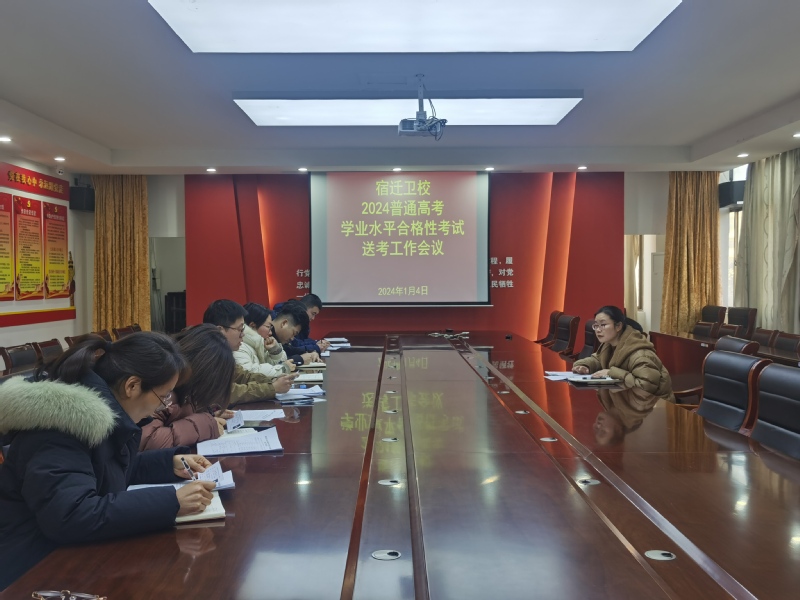 为确保2024年普通高中学业水平合格性考试送考工作顺利进行,确保考生安全赴考,1月4日下午,宿迁卫校召开送考工作会议,招就处处长耿云、考试送考人员参与此次会议。
