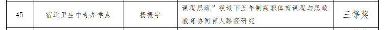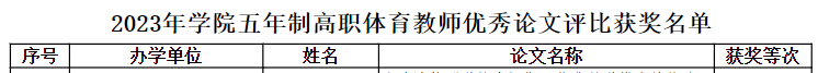 近日,江苏联合职业技术学院学生工作指导委员会体育指导委员会公布了2023年学院五年制高职体育教师优秀论文评比结果,我校杨振宇老师的论文《“课程思政”视域下五年制高职体育课程与思政教育协同育人路径研究》荣获三等奖。