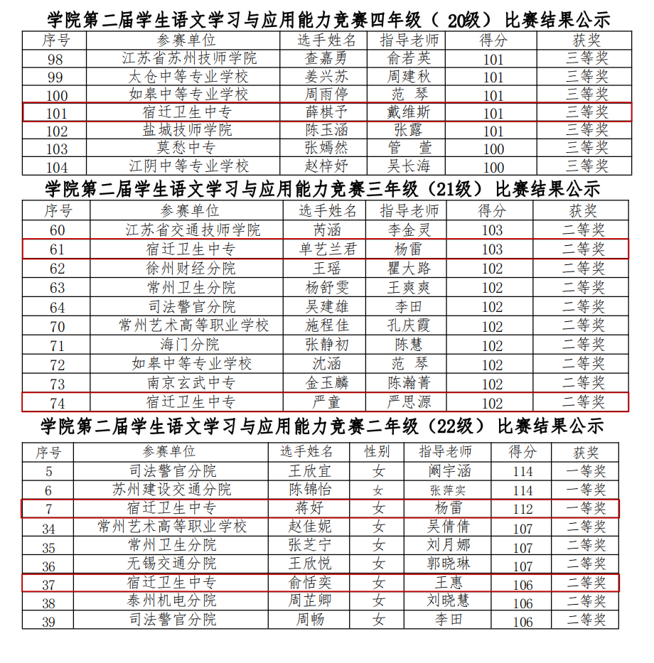 近日,江苏联合职业技术学院第二届语文学习与应用能力比赛圆满落幕。我校共9名学生参与此次比赛,其中医学系蒋好荣获一等奖,护理系俞恬奕、药学系严童、医学系单艺兰君荣获二等奖,护理系薛棋予荣获三等奖。