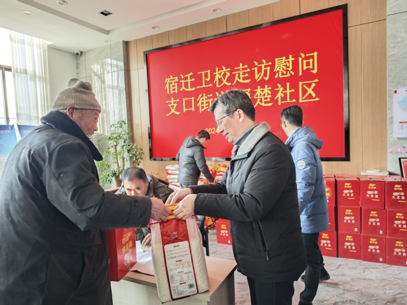 迎新春,送祝福。1月26日,宿迁卫校组织党员干部深入宿城区支口街道探楚居委会开展挂村帮促暨走访慰问活动。党委书记、校长张超,党委委员、副校长王立、党委委员章浩及学校帮扶责任人50余人参加活动。