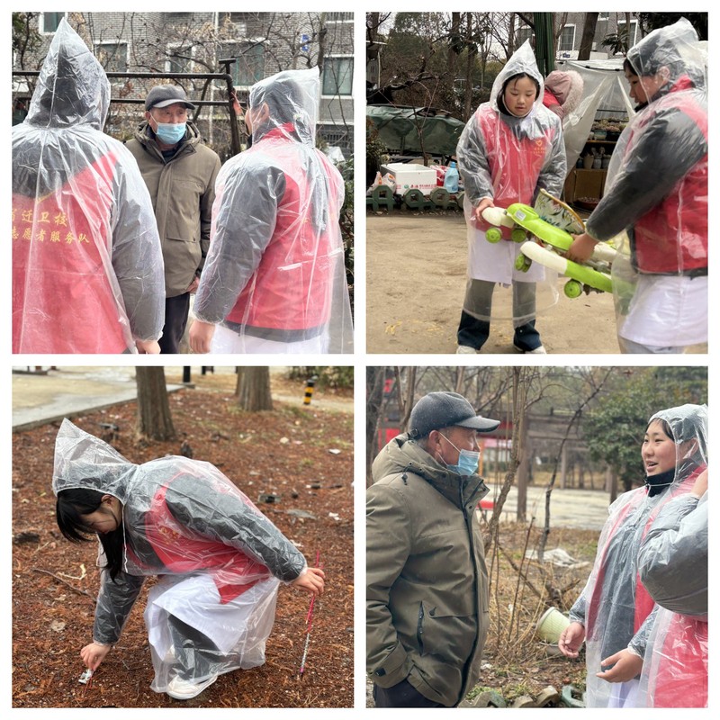 5日上午,学生志愿者们带着热情、顶着细雨、身着雨衣在团委老师的带领下走进学府人家小区,跟随小区党员同志一起开展社区卫生排查工作,排查安全隐患并清理下水道;同时走访独居老人,对高龄老人等特殊群体进行摸排,全面掌握其身体情况,践行雷锋精神。