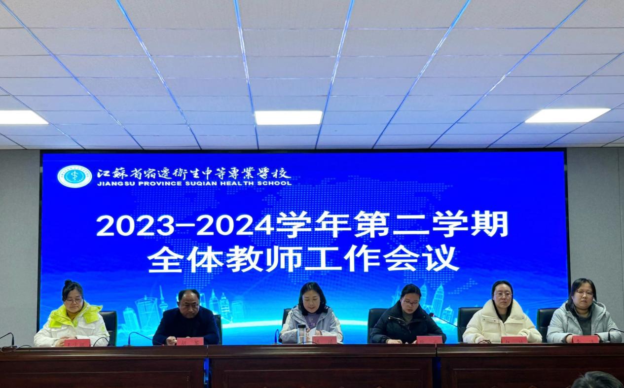 为明确新学期工作重点,确保新学期各项教育教学工作有序开展,激励全体教职员工为学校高质量发展工作团结奋斗、勇毅前行,3月4日,宿迁卫校召开2023-2024学年第二学期全体教师工作会议。校党委委员、副校长潘靖出席会议,全体教职工及外聘教师参加会议,会议由教务处处长耿云主持。
