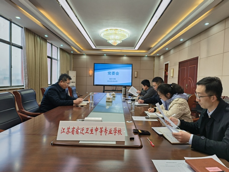 3月25日,宿迁卫校召开党委会,传达学习习近平总书记在全国两会期间的重要讲话精神和习近平在参加江苏代表团审议时关于“强调因地制宜发展新质生产力”的重要讲话。党委书记、校长张超主持会议,学校党委领导班子参加学习。