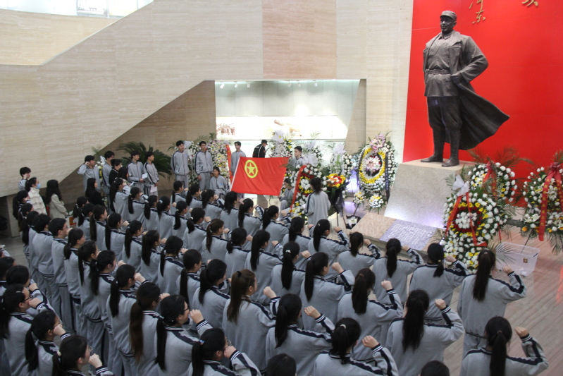 庄严的祭扫活动在雄壮的国歌中拉开帷,全体师生肃立,团员代表敬献花圈,向那些以身许国的英魂致以最深切的缅怀和最崇高的敬意。接着,全体师生在革命烈士纪念碑前静默肃立,集体默哀一分钟,以表达对先烈的无限哀悼。随后,全体团员重温入团誓词,铿锵有力的誓词在纪念馆内响起,告慰先烈、传承遗志、砥砺前行。