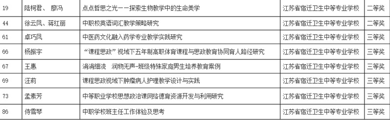 一直以来,宿迁卫校高度重视教师专业成长,多方搭建平台切实提升教师科研能力和水平,全面提升了学校教育教学质量,助力宿迁卫生健康事业高质量发展。