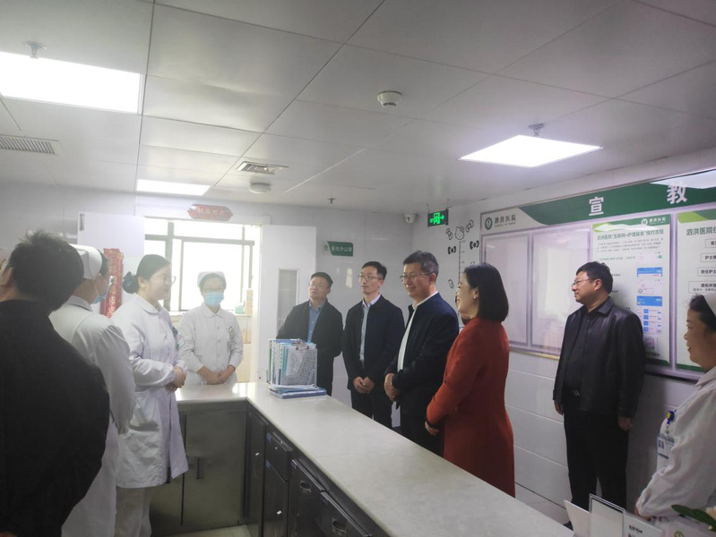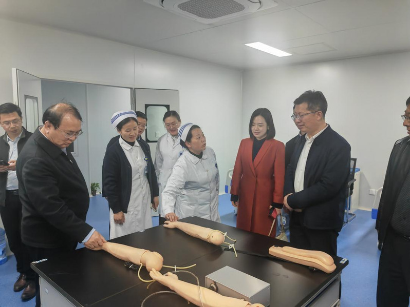 随后,张超一行参观泗洪医院临床技能培训中心,走访临床科室看望学校在岗实习生,大家对泗洪医院的临床实训、带教实习给予充分肯定,张超希望校企双方今后要进一步提高人才培养匹配度,加强护理专业的人才合作。