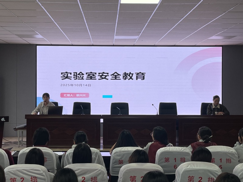 随后,蔡兴兴老师开展“实验室安全教育及制度要求”专题讲座。她结合真实案例,阐述遵守实验室安全规范的必要性,详细讲解仪器设备操作、危化品管理及应急处理等规章制度,要求学生时刻绷紧安全弦,将安全知识内化于心、外化于行,确保技能训练与考核安全有序。