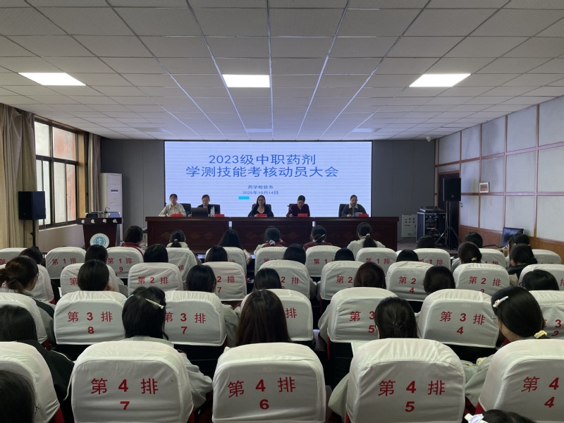 为营造浓厚备考氛围、明确奋斗目标,10 月 14 日下午,宿迁卫校召开 2023 级中职药剂学测技能考核动员大会,对即将到来的学业水平测试、职教高考及专业技能考核进行全方位部署,为学生冲刺复习指明方向、鼓舞士气。药学检验系主任仲琴、副主任卓巧凤,药学教研室主任郑玲玲、宋静媛,23 级学测班班主任及全体学生参会,会议由宋静媛主持。