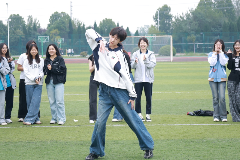 活动现场,突如其来的“快闪”表演瞬间吸引了过往师生的目光,大家纷纷驻足观看,随着曲库中随机播放的音乐即兴舞动,台下观众则化身啦啦队。舞者们或灵动跳跃,或默契配合,将现代舞的动感与青春的朝气展现得淋漓尽致。“太惊喜了!原本只是路过操场,没想到被这活力满满的舞蹈‘圈粉’了!”2024级中医康复班的王梓雯笑着说,不由自主地跟着节奏挥动双手。来自2024级护理4班的翁莎莎凭借日常的舞蹈基础完成了精彩表演,赢得了全场喝彩。