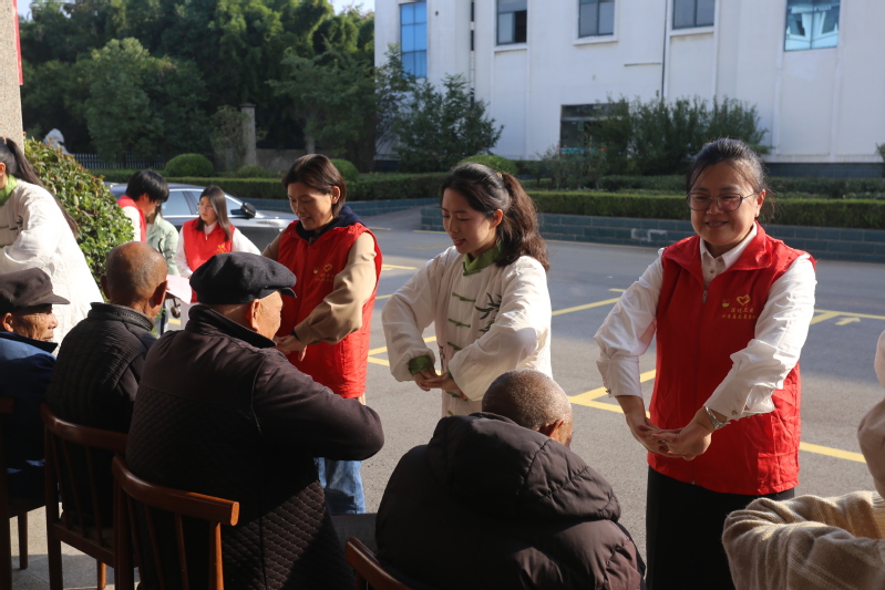 其中,由第五党支部党员教师与仁爱志愿者服务队共同演绎的《八段锦手指操》尤为亮眼。党员教师与志愿者们带领老人们一同活动手指,动作轻柔舒缓,既贴合老年人身体状况,又传递出党建引领下的暖心关怀。