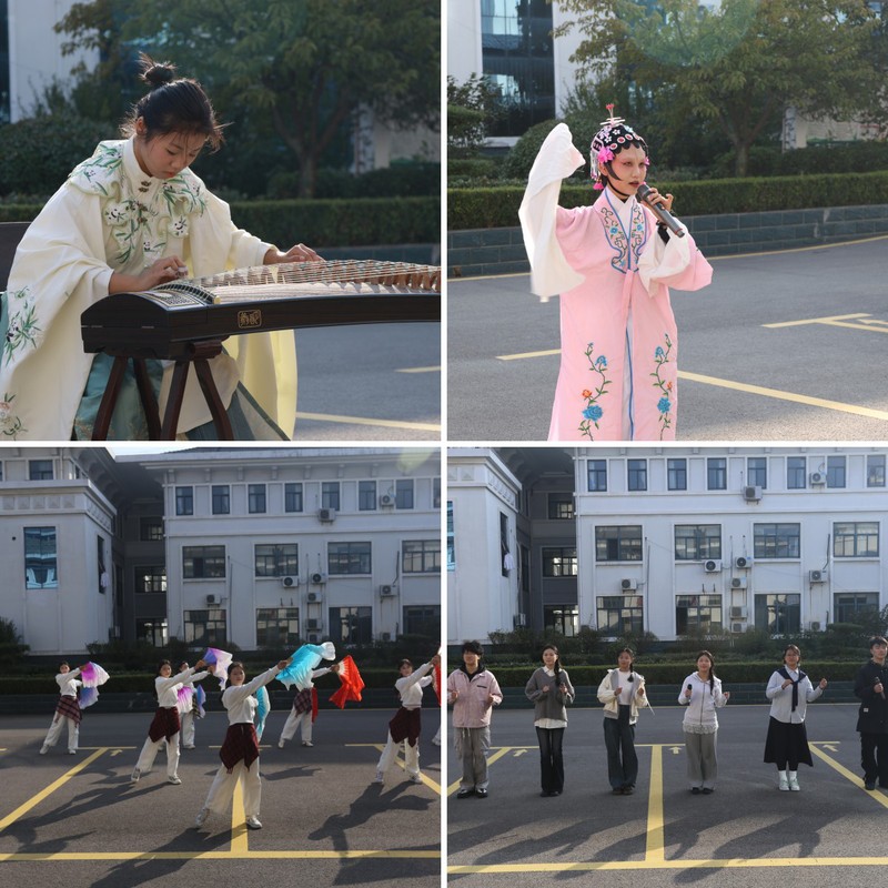 随着主持人热情洋溢的开场,文艺演出正式拉开帷幕。11个精心编排的节目轮番上演,涵盖舞蹈、器乐、太极、戏曲、手指操等多种形式,为老人们带来了一场视听盛宴。体育舞蹈社的《美丽中国》以灵动舞姿展现家国情怀;Solo器乐社的古筝《女儿情》用悠扬旋律传递经典韵味;中华功夫兴趣小组与X-Power舞蹈社合作的《太极》与《巴啦啦小魔仙》,将传统武术的沉稳与青春舞蹈的活力巧妙融合,引得老人们阵阵掌声;逐梦音乐社带来的《我只在乎你》《黄梅戏》等节目,或深情款款,或韵味悠长,尽显传统与流行的碰撞。