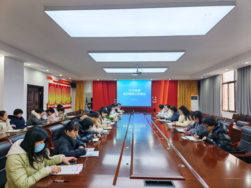 为了全面部署、科学统筹2026年护士执业资格考试辅导工作,助力学生顺利应考,12月31日,宿迁卫校召开护士执业资格考试辅导工作会议。宿迁卫校校长陈新颖出席会议并提要求,教务处处长王星、学工处副处长杨阳、护理系副主任李小丽、护理系学工负责人钱姗姗、全体辅导教师以及2026届毕业班班主任参加会议。会议由护理系副主任唐清主持。