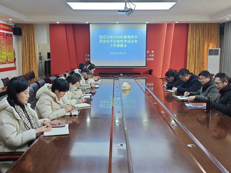 12月31日下午,宿迁卫校召开2026年普通高中学业水平合格性考试送考工作部署会,校党委委员、副校长王立,招就处处长丁炳干及招就处全体人员、考试班班主任参会。