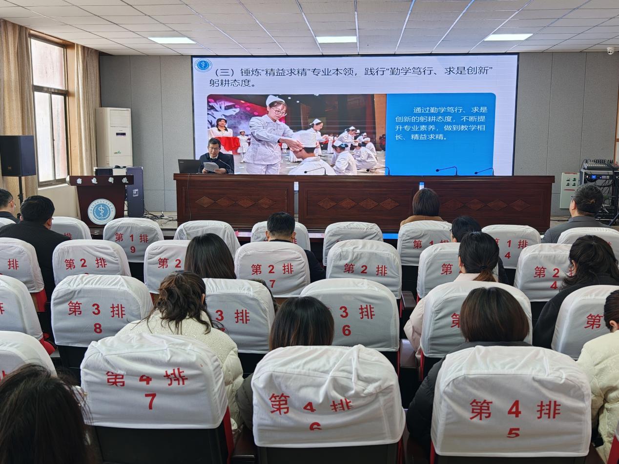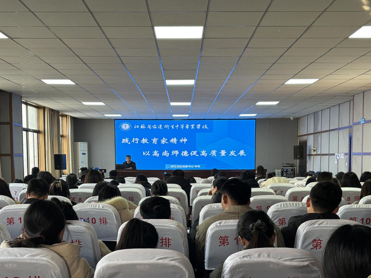 为深入学习贯彻习近平总书记关于教育及卫生健康工作的重要论述,全面落实2026年全国教育工作会议和全省职业教育大会精神,强化教师师德修养与责任担当,1月16日,宿迁卫生学校召开师德师风专题讲座。学校党委书记张超出席会议并作专题讲话,全体教职工参加会议。