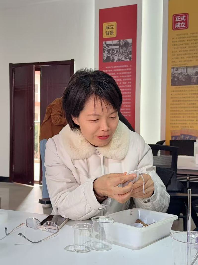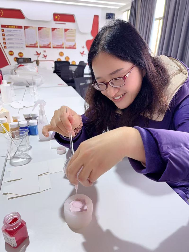 在随后的动手实践环节,女教师们在老师的悉心指导下,纷纷化身为能工巧匠。大家围坐在一起,称量香粉、调和揉捏、压模成型、修整打磨、穿绳配穗……每一个步骤都一丝不苟,用心感受着传统手工艺的独特魅力。现场气氛热烈而融洽,大家一边精心制作属于自己的独特香品,一边交流工作与生活的感悟,在幽幽药香中放松身心,在指尖流转间感悟传统。