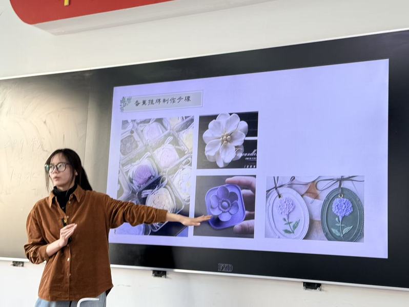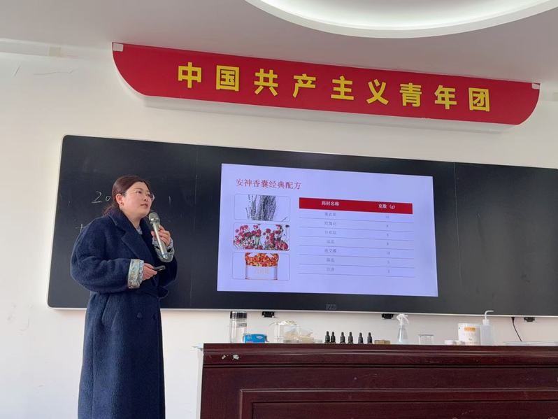 活动现场,花香四溢,笑语盈盈,处处洋溢着温馨喜悦的节日氛围。药学系副主任卓巧凤、药学系教师孙荣蔚首先带来了一场精彩的香文化讲座,深入浅出地讲解了香牌、香囊的历史渊源、文化内涵、药材功效以及制作技艺。从香方的配伍到香泥的揉捏,从模具的使用到配饰的搭配,老师们听得聚精会神,对即将开始的手工制作充满了期待。