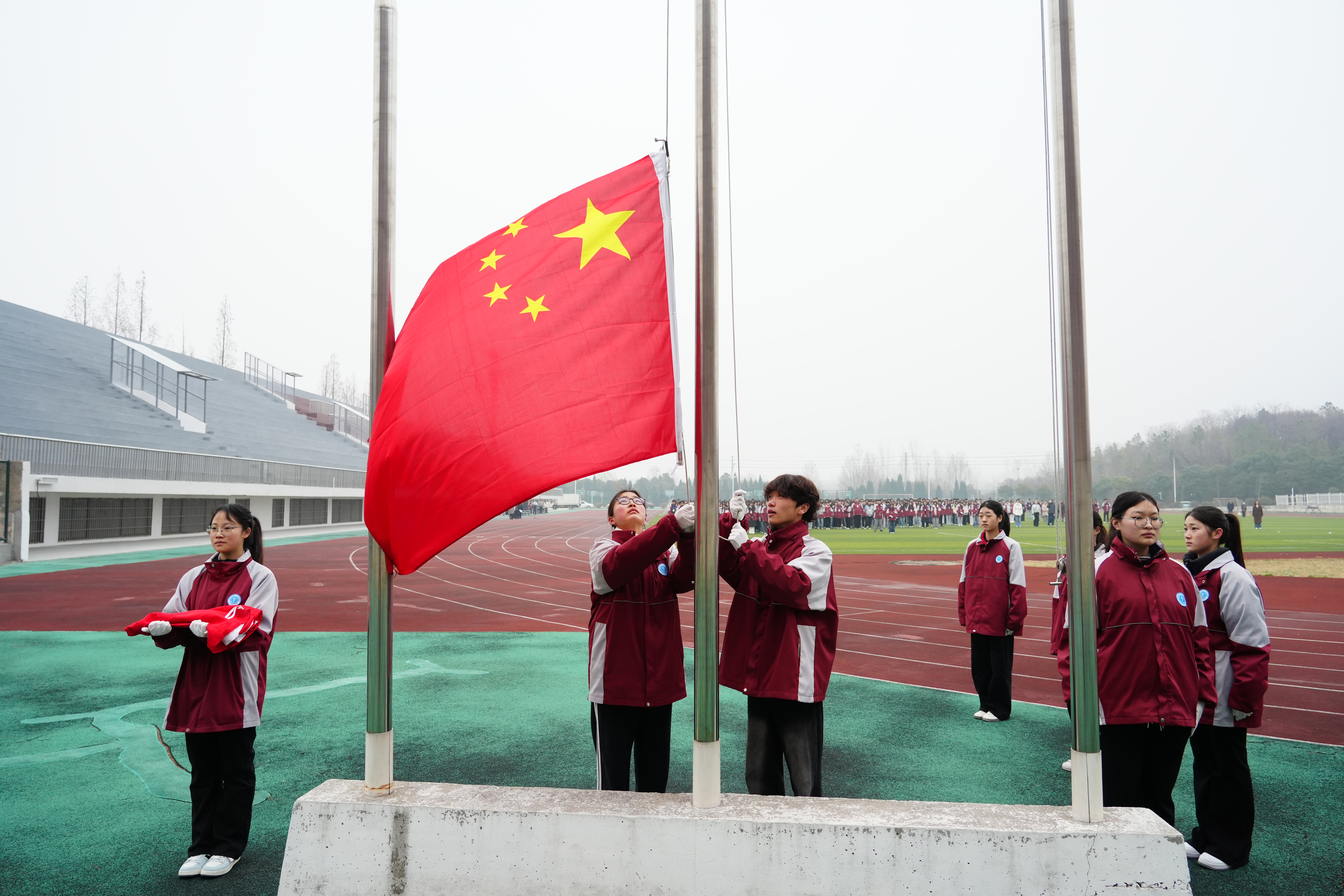 在雄壮的国歌声中,五星红旗冉冉升起,全体师生肃立行注目礼。雷锋精神如火种播撒心间,在国旗下庄严起航。